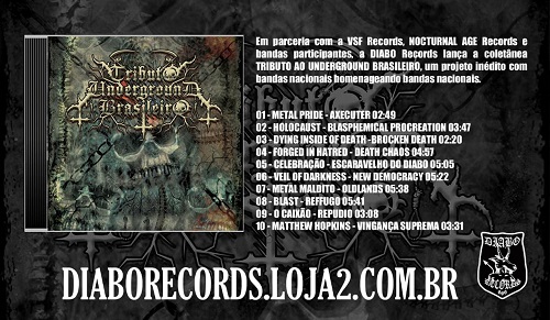 Lançado em uma parceria entre os selos Diabo Records, VSF Records e Nocturnal Age Records, o “Tributo Underground Brasileiro” já pode ser adquirido por R$ 15,00 (+ frete) clicando aqui.