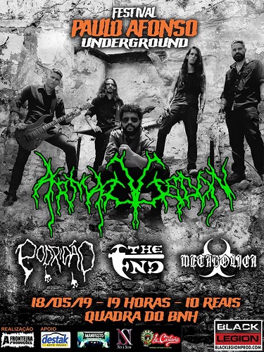 A banda Armaggedon se apresenta no festival “Paulo Afonso Underground”, dia 18 de maio de 2019, juntamente com as bandas Podridão, The End e Metabolica, na quadra do BNH, em Paulo Afonso/BA.