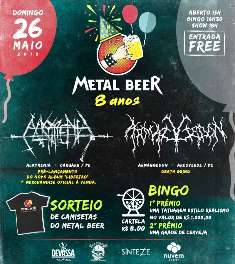 A apresentação é em homenagem aos oito anos do bar Metal Beer, importante local que sempre deu importância as bandas da região. Será também o pré-lançamento do disco “Libertad” da banda Alkymenia. Além dos shows, também será realizado um sorteio de camisetas do bar, além de um bingo com diversos prêmios, como uma tattoo realista no valor de R$ 1.000,00 do Estúdio Los Crânios Tattoo & Piercing, e uma grade de cerveja. A entrada é franca.