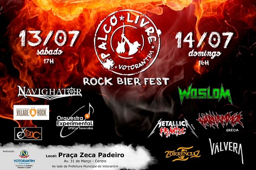 Celebrando o “Dia Mundial do Rock”, a cidade de Votorantim/SP promove duas noites de apresentações com grandes nomes do cenário nacional. Intitulado de “Palco Livre”, o festival irá contar com várias apresentações se intercalando entre os dias 13 e 14 de julho de 2019.