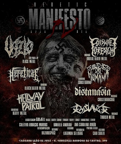 O “Herectic Manifesto IV: Open Air” conta ainda com as bandas Vazio, Dismal Foresight, Distanásia, Enslaver, Degradação Humana e Hereticae. No local ainda haverá presença de expositores de arte, merchandise e alimentação. Ingressos já estão à venda. Mais informações aqui.