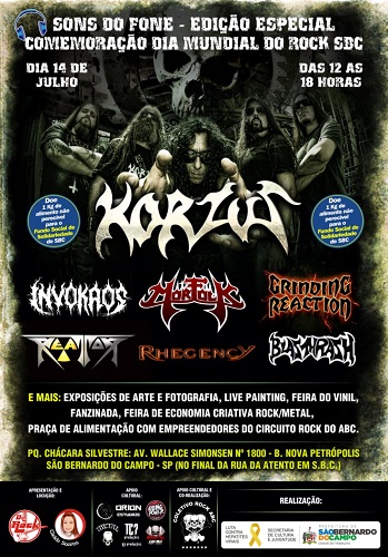 O nome de peso do “Dia Mundial do Rock SBC” será responsabilidade dos gigantes do Korzus. Outro nome forte e de destaque é os representantes do Hardcore paulista, o Grinding Reaction, que promove um show recheado de clássicos de toda a carreira do grupo.