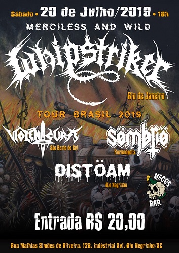 O ‘power trio’ catarinense de Thrash Metal Violent Curse acaba de divulgar uma nova série de shows pelo sul do Brasil e se prepara para lançar material inédito. Peter Fragoso (vocal/guitarra), Neto Rothbarth (baixo) e Lucas Cruz (bateria) estão finalizando o trabalho de produção do single “Violador”, que será disponibilizado no próximo mês (agosto/2019), sucedendo, assim, o EP “Total Extermínio”, de 2014.
