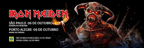 O Iron Maiden virá ao Brasil em outubro desse ano (2019) para se apresentar em São Paulo e Porto Alegre, além do festival Rock in Rio. Os ingressos já estão à venda.