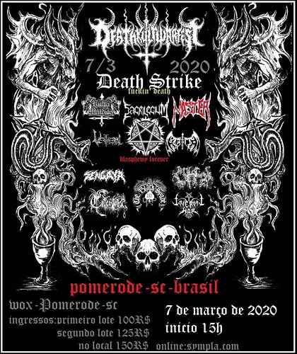Estamos falando do tradicional “Deathkult Warfest”, que em sua sexta edição confirmou a horda ao lado de outros grandes nomes do Metal mundial, como Master (USA), Death Strike (USA), Verthebral (Paraguai), Kulto Maldito (Bolívia), Offal, Totemtabu e muito mais. O evento acontecerá em Pomerode/SC, nos dias 07 e 08 de março de 2020. Para mais informações clique aqui.