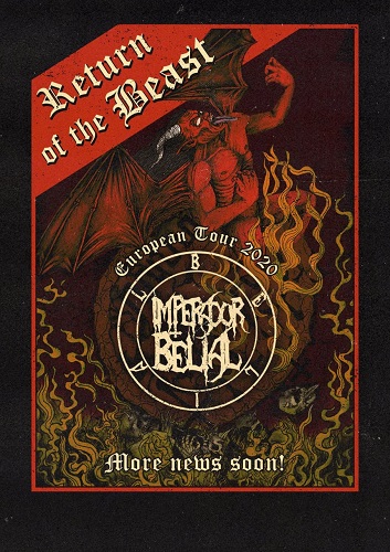 Como anunciado recentemente, o Imperador Belial estará retornando ao Velho Continente em janeiro de 2020 em turnê que estará servindo de suporte na divulgação dos seus atuais trabalhos “Curse Of Belial” e “Inkubus Origins”.