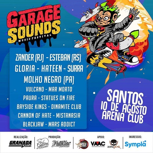 A banda estará em sua cidade natal, Santos/SP, onde acontece hoje, 10/08/2019, o “Garage Sounds Santos 2019”. O evento contará com 11 edições espalhadas por diversos estados do Brasil, e para esta, estão confirmados nomes como Surra, Garage Fuzz, Statues on Fire, Paura, Cannon of Hate, Esteban, Gloria, Hateen e muito mais. Para mais informações clique aqui. Ingressos online: www.sympla.com.br.