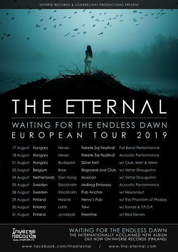 A banda australiana de Gothic Metal The Eternal anunciou sua primeira série de shows europeus em dez anos. A banda passará por Hungria, Holanda, Bélgica, Suécia e Finlândia, com uma fantástica seleção de bandas, incluindo o Vetrar Draugurinn & Red Eleven. O The Eternal vai começar a turnê com uma aparição no “Fekete Zaj Fesztivál” na Hungria, onde farão shows elétricos e acústicos completos.