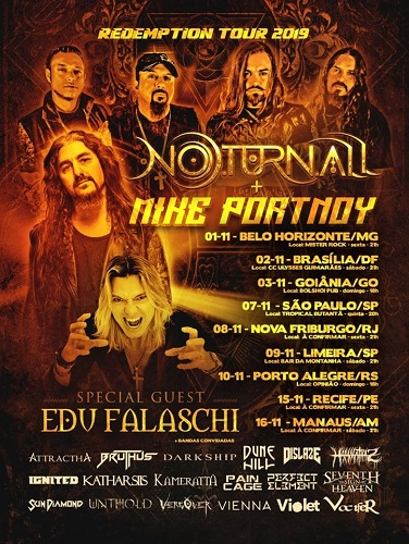 Dessa vez o ex-Angra é convidado da turnê “Redemption Tour 2019” realizada pelo Noturnall e que contará com o lendário baterista norte-americano Mike Portnoy (The Winery Dogs, Sons of Apollo, ex-Dream Theater).
