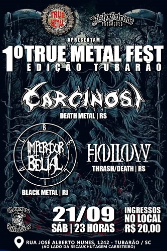 A banda foi confirmada, ao lado de Carcinosi e Hollow, no “True Metal Fest”, que pela primeira vez será realizado na cidade de Tubarão/SC, na já conhecida Caverna Kilmister. O evento está sendo organizado em uma parceria com o selo gaúcho True Metal e a produtora Bisho Extreme Produções. Para mais informações clique aqui.