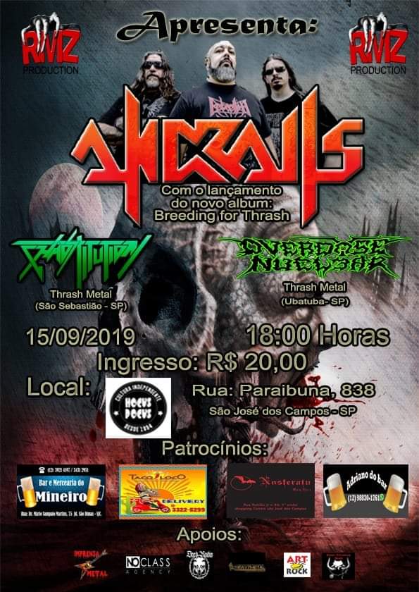 Com “Bleeding For Thrash”, sexto álbum de estúdio, o Andralls reconquistou seu espaço com um dos mais importantes nomes do thrash metal brasileiro. Os seguidos shows só comprovam a tendência de que Alex Coelho (vocal e guitarra), Felipe Freitas (baixo) e Alexandre “Xandão” Brito (bateria) conseguem ser ainda mais energéticos praticando o seu autointitulado “fasthrash”. Ainda que com outros shows sendo agendados, como o do próximo domingo (15/09/2019), quando se apresentará em São José dos Campos (SP), o trio confirmou a presença em um álbum tributo ao Iron Maiden.