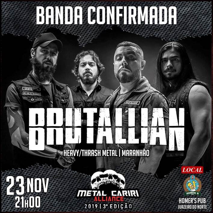 O “Metal Cariri Alliance” será realizado no Homer’s Pub em Juazeiro do Norte/CE. Os shows terão início às 21h00 e em breve novas atualizações serão feitas nas redes sociais do Brutallian e também, na página oficial do festival.