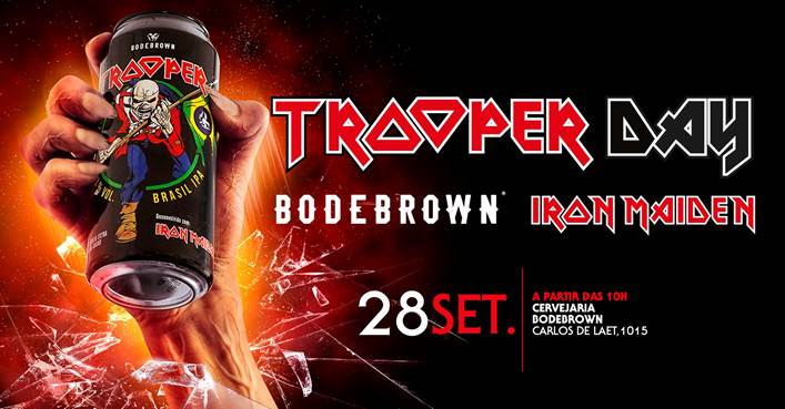 Dia 28 de setembro de 2019, sábado, vai rolar em Curitiba/PR o evento “Trooper Day – Bodebown & Iron Maiden”. O intuito é lançar oficialmente na capital paranaense a nova cerveja da Donzela de Ferro.
