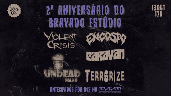 O “2º Aniversário do Bravado Estúdio” será celebrado dia 13 de outubro de 2019. Para isso, está sendo organizado uma tarde/noite repleta de grandes bandas se apresentando para o público que prestigiar o evento.