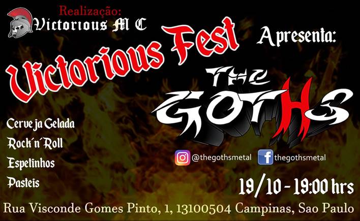O evento terá como banda principal o The Goths, que leva seu Thrash/Heavy Metal à sede dos motociclistas do Victorious MC a partir das 19h00.