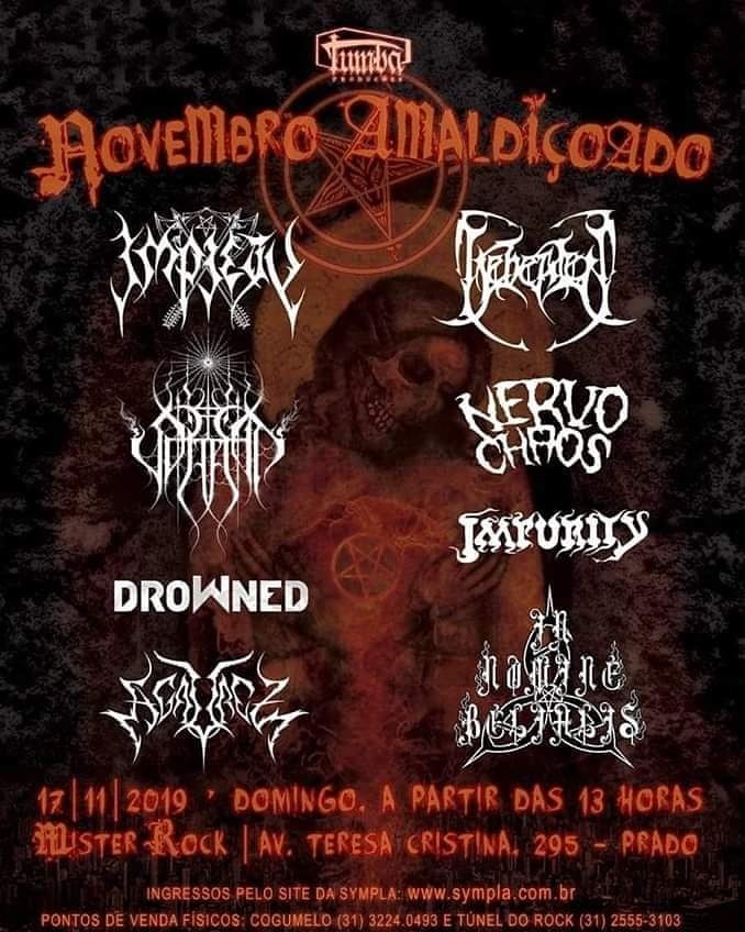 Que for no festival “Novembro Amaldiçoado”, além de conferir grandes nomes do cenário nacional e internacional, poderá conferir o Drowned tocando parte de seu ‘set list’ com a formação que registrou o disco “By the Grace of Evil”. Terá, assim, a participação do baixista Rodrigo Nunes, da formação original. Vai ser a primeira vez, em 15 anos, que a formação original toca junto.
