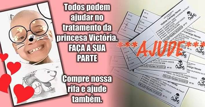 Para ajudar a família de Victória, a banda Ossos está vendendo uma rifa com vários números pelo valor de apenas R$ 10,00. Ao adquirir um número, o participante estará concorrendo a cinco brindes que serão sorteados pelos músicos do Ossos. Os brindes são: