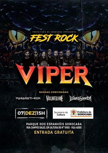 No próximo sábado a banda de Death Metal Warshipper dividirá o palco com um dos maiores baluartes do Metal nacional, o Viper, em show gratuito na cidade de Sorocaba/SP, dentro do evento “Fest Rock”, realizado pela Prefeitura Municipal de Sorocaba.