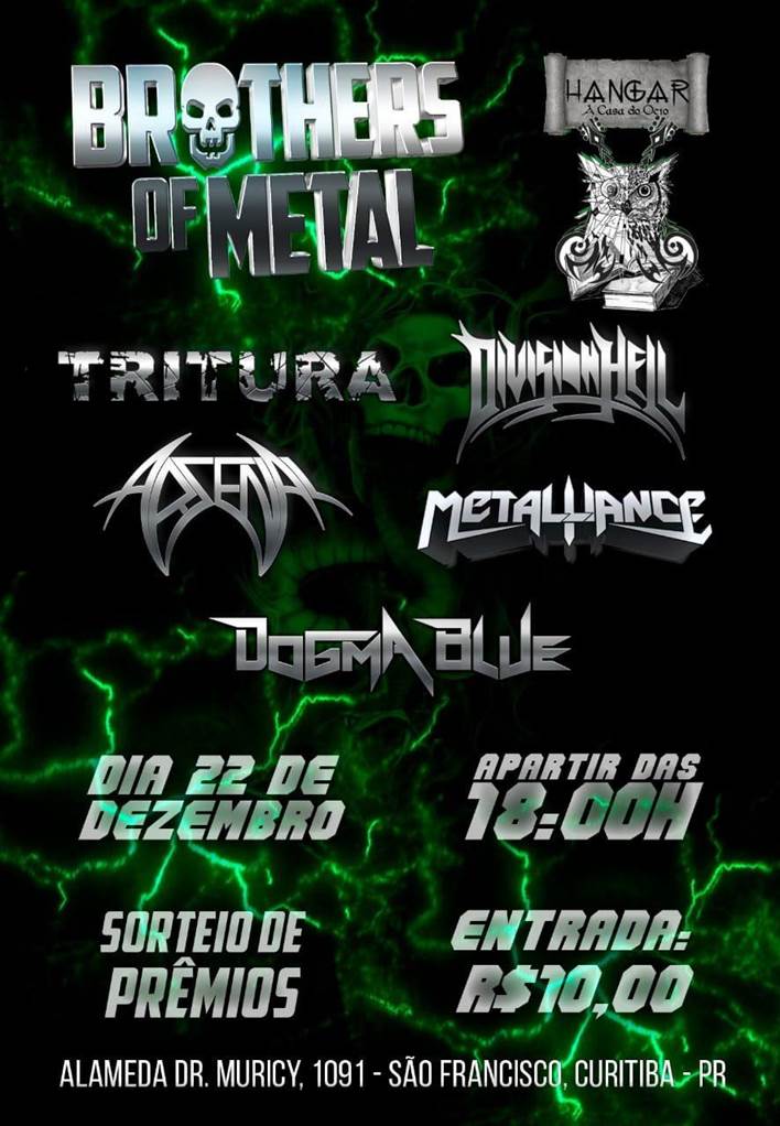 No último fim de semana que irá anteceder as festividades de final de ano será realizado, na cidade de Curitiba/PR, o evento “Brothers of Metal”, que irá reunir cinco bandas de diversos estilos no Hangar, a Casa do Ócio.