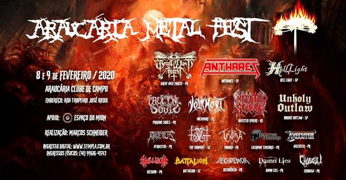 É neste final de semana que será realizado um dos grandes festivais do estado do Paraná. Começa no sábado (08/02) e vai até o domingo (09/02) o “Araucária Metal Fest”, que reunirá 17 bandas do país em duas noites que prometem ser insanas.