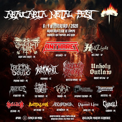 A banda estará presente no “Araucária Metal Fest”, que acontece nos dias 08 e 09 de fevereiro de 2020 e contará com outros 16 nomes de peso, dentre eles estão: Anthares, Great Vast Forest, Hell Light, Battalion e muito mais. Para mais informações clique aqui.