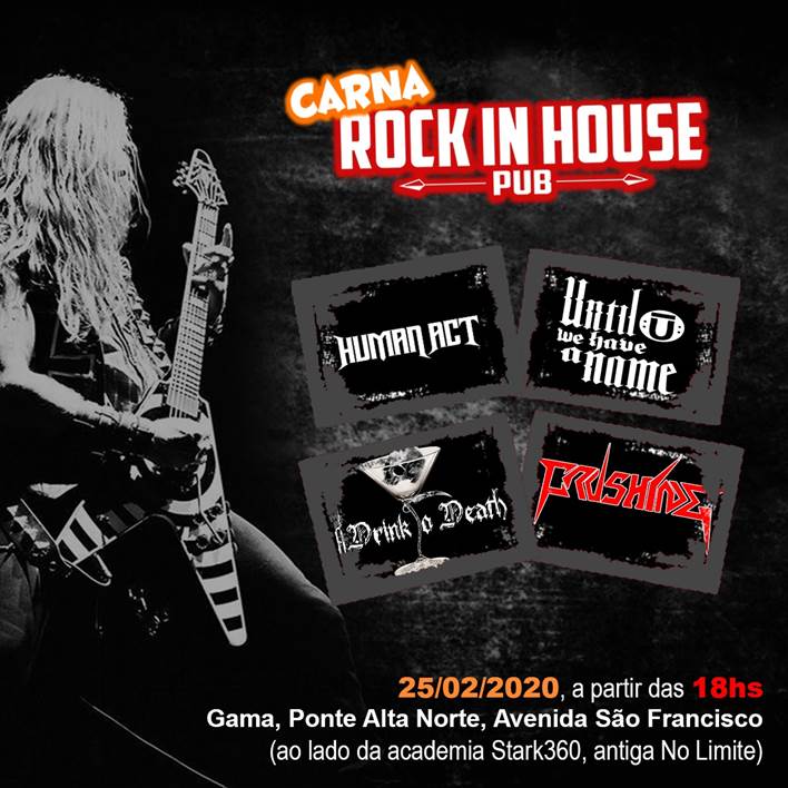 Será realizado na próxima terça-feira, 25/02/2020, feriado de carnaval, o “Carna Rock In House Pub”, na cidade de Gama/DF, com quatro excelentes bandas de Metal Extremo.