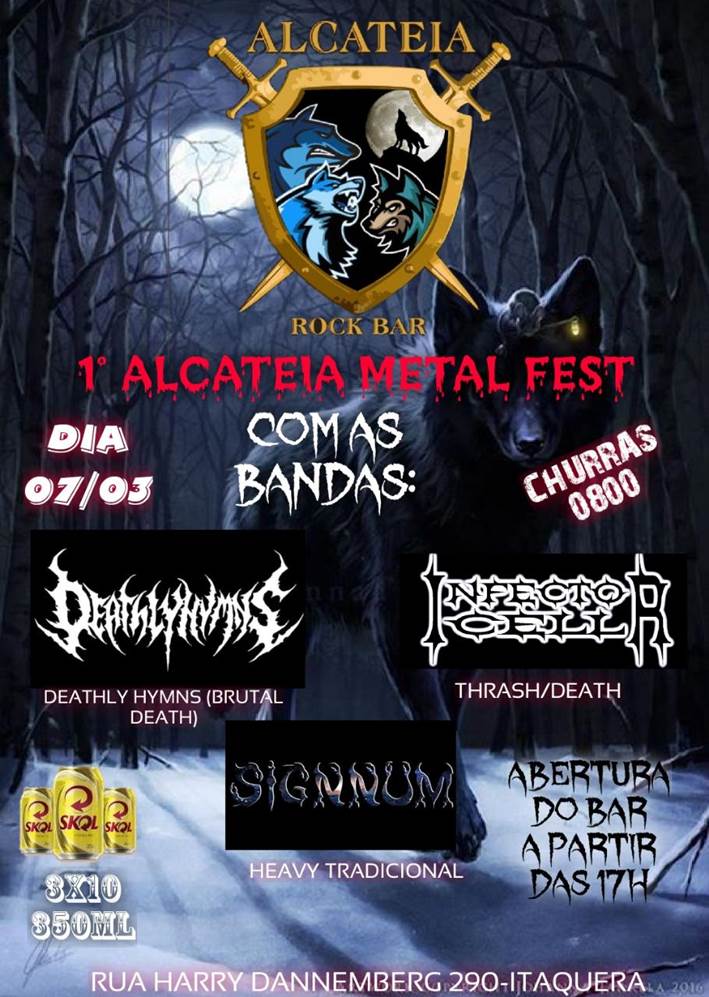 Dia 07 de março de 2020 será realizado o “1º Alcateia Metal Fest”, em São Paulo. O evento irá reunir três bandas de peso da cidade, onde destruição, riffs mortais, peso e agressividade, serão elementos certeiros para o público que comparecer no Alcateia Rock Bar.