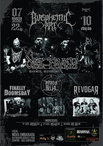 O evento, que contará também com Finally Doomsday, Revogar e os mineiros do Sex Trash, ocorre neste fim de semana, 07/03/2020, na Nova Embaixada. Para mais informações clique aqui.