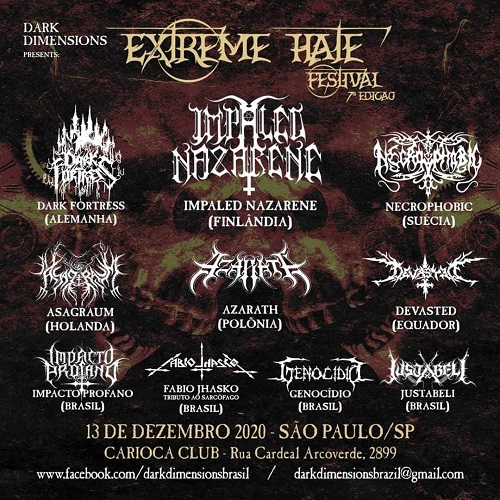 Consolidando-se no Brasil como um dos maiores e melhores festivais de Metal Extremo do país, os organizadores do “Extreme Hate Festival” acabam de anunciar o ‘cast’ da sétima edição, que será realizado em São Paulo, no Carioca Club, dia 13 de dezembro de 2020.