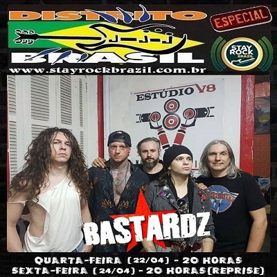 Hoje, a partir das 20h00, banda paulistana de Hard Rock Bastardz irá apresentar ao programa Distrito Brasil da rádio Stay Rock Brazil, a nova formação, agora contando com o vocalista Fabz Zambon ao lado dos remanescentes Danny Poison (guitarra), Thomas Buttcher (guitarra), Drannath Kate (baixo) e Mr. Lady (bateria), além de uma performance ao vivo no estúdio. Não perca!