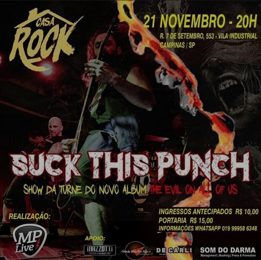 E é para divulgar o novo álbum que o Suck This Punch retorna aos palcos com um show presencial na Casa Rock em Campinas/SP no próximo dia 21 de novembro de 2021. Com produção da MP Live Produções, a apresentação está programada para iniciar às 20h e os ingressos antecipados estão à venda por R$ 10,00 pelo Whats App: (19) 9.9958-6348.