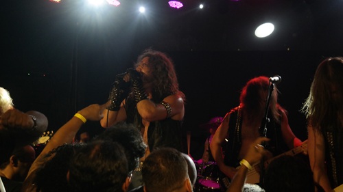 E, pontualmente, o Ambush começa a sua apresentação, com o público já se espremendo em frente do (baixo) palco do Estelita. “Firestorm” deu início a um show que, desde o começo, demonstrava que seria intenso, cheio de energia. Parte do público já cantava a música e a intensidade da banda no palco era incrível. Antes de executar a primeira música, Oskar Jacobsson (vocal) já manda um “boa noite, Recife!”, em alto e bom português. E depois desse início, o que não houve foi intervalo entre uma música e outra. O ritmo foi alucinante! Fantástico! Intenso! Cheio de energia! A banda transpirando Heavy Metal em cada segundo, sem rodeios, direto ao ponto. O público, vendo isso, reagiu muito bem, sendo no ‘bangin’ ou até mesmo em alguns ‘surfing crowds’, moshes e ensaios de ‘circle pits’. Coisa linda de se ver! A sequência foi avassaladora - e, como já mencionei, sem intervalos -, com a Speed Metal “Possessed by Evil” colocando todos para agitar; a maravilhosa “Evil in All Dimensions”, música que dá título ao novo álbum, numa interpretação soberba; a não menos emocionante “Maskirovka”, essa, sim, com os riffs galopantes sendo tocados e Oskar falando sobre o que trata a letra. Lindo de se ver e ouvir, também, o coro do público. Impossível ficar sem bater cabeça nessa música (e em qual foi possível ficar parado?). A banda sai do palco e nele fica apenas o guitarrista Karl Dotzek, que executa um solo de guitarra. Fazia tempo que eu não via isso num show de Heavy Metal. Muito bom volta a ver esse tipo de performance. Saliento, ainda, que a potência vocal de Oskar é tão grande, que ele dava agudos intermináveis e com tamanha facilidade, que meus ouvidos, até agora (domingo, 11h25) ainda estão ‘zumbindo’. Além disso, o cara tem forte carisma. Comandou muito bem o público, se comunicando, por vezes, em português, até pedindo desculpas pelo português não ser tão legal. Importante ver um integrante de banda de fora se esforçando para falar nossa língua. E, ao menos alguns palavrões, ele aprendeu bem. Mas não só Oskar. Toda a banda transmite uma energia incrível. A sua performance, em palco, chegou a me lembrar grandes baluartes do estilo. E é perceptível que a música do Ambush traz forte influência de bandas como Judas Priest, Scorpions, Mercyful Fate, Iron Maiden, Dio, mas tudo usado a seu favor e criando algo bem próprio. Voltando ao show, não havia grandes intervalos entre as músicas, só o puro Heavy Metal nos sendo apresentado, música após música, riffs após riffs. E com um baixo - de Oskar Andersson - “trovejante”. O ‘set list’ se seguiu com “Desecrator” (refrão contagioso e com muita melodia), “Hellbiter”, e mais duas do novo álbum: “Come Angel of Night” (riffs nervosos demais!) e “Bending the Steel”. E quem não ouviu, ainda, esse novo disco do Ambush, faça isso urgentemente! “Natural Born Killers” precedia o final do show e num momento da música, mais para o seu final, a banda deixou o título ser cantado pelos presentes e a plenos pulmões. Banda sai do palco, novamente, ficando apenas o baterista Linus Fritzson, dessa vez o responsável por instigar o público e perguntar se queriam mais... E queriam, mas para isso ele quis que todos gritassem o mais alto possível! E a banda volta! E não atirou, deixou queimar! O final veio com a total Speed Metal “Don’t Shoot (Let ‘Em Burn)”, fechando o show com chave de ouro. Ou melhor, com chave de aço, couro, rebites e punhos ao ar! Banda espetacular. É aquele tipo de banda que é melhor ainda em palco do que nos álbuns. E todos merecem destaque, porque não precisam ser mirabolantes com seus instrumentos para nos apresentar algo de alta qualidade, que o diga os riffs da guitarra de Olof Engkvist ou as levadas precisas da bateria de Fritzson.