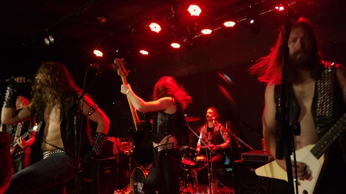 E, pontualmente, o Ambush começa a sua apresentação, com o público já se espremendo em frente do (baixo) palco do Estelita. “Firestorm” deu início a um show que, desde o começo, demonstrava que seria intenso, cheio de energia. Parte do público já cantava a música e a intensidade da banda no palco era incrível. Antes de executar a primeira música, Oskar Jacobsson (vocal) já manda um “boa noite, Recife!”, em alto e bom português. E depois desse início, o que não houve foi intervalo entre uma música e outra. O ritmo foi alucinante! Fantástico! Intenso! Cheio de energia! A banda transpirando Heavy Metal em cada segundo, sem rodeios, direto ao ponto. O público, vendo isso, reagiu muito bem, sendo no ‘bangin’ ou até mesmo em alguns ‘surfing crowds’, moshes e ensaios de ‘circle pits’. Coisa linda de se ver! A sequência foi avassaladora - e, como já mencionei, sem intervalos -, com a Speed Metal “Possessed by Evil” colocando todos para agitar; a maravilhosa “Evil in All Dimensions”, música que dá título ao novo álbum, numa interpretação soberba; a não menos emocionante “Maskirovka”, essa, sim, com os riffs galopantes sendo tocados e Oskar falando sobre o que trata a letra. Lindo de se ver e ouvir, também, o coro do público. Impossível ficar sem bater cabeça nessa música (e em qual foi possível ficar parado?). A banda sai do palco e nele fica apenas o guitarrista Karl Dotzek, que executa um solo de guitarra. Fazia tempo que eu não via isso num show de Heavy Metal. Muito bom volta a ver esse tipo de performance. Saliento, ainda, que a potência vocal de Oskar é tão grande, que ele dava agudos intermináveis e com tamanha facilidade, que meus ouvidos, até agora (domingo, 11h25) ainda estão ‘zumbindo’. Além disso, o cara tem forte carisma. Comandou muito bem o público, se comunicando, por vezes, em português, até pedindo desculpas pelo português não ser tão legal. Importante ver um integrante de banda de fora se esforçando para falar nossa língua. E, ao menos alguns palavrões, ele aprendeu bem. Mas não só Oskar. Toda a banda transmite uma energia incrível. A sua performance, em palco, chegou a me lembrar grandes baluartes do estilo. E é perceptível que a música do Ambush traz forte influência de bandas como Judas Priest, Scorpions, Mercyful Fate, Iron Maiden, Dio, mas tudo usado a seu favor e criando algo bem próprio. Voltando ao show, não havia grandes intervalos entre as músicas, só o puro Heavy Metal nos sendo apresentado, música após música, riffs após riffs. E com um baixo - de Oskar Andersson - “trovejante”. O ‘set list’ se seguiu com “Desecrator” (refrão contagioso e com muita melodia), “Hellbiter”, e mais duas do novo álbum: “Come Angel of Night” (riffs nervosos demais!) e “Bending the Steel”. E quem não ouviu, ainda, esse novo disco do Ambush, faça isso urgentemente! “Natural Born Killers” precedia o final do show e num momento da música, mais para o seu final, a banda deixou o título ser cantado pelos presentes e a plenos pulmões. Banda sai do palco, novamente, ficando apenas o baterista Linus Fritzson, dessa vez o responsável por instigar o público e perguntar se queriam mais... E queriam, mas para isso ele quis que todos gritassem o mais alto possível! E a banda volta! E não atirou, deixou queimar! O final veio com a total Speed Metal “Don’t Shoot (Let ‘Em Burn)”, fechando o show com chave de ouro. Ou melhor, com chave de aço, couro, rebites e punhos ao ar! Banda espetacular. É aquele tipo de banda que é melhor ainda em palco do que nos álbuns. E todos merecem destaque, porque não precisam ser mirabolantes com seus instrumentos para nos apresentar algo de alta qualidade, que o diga os riffs da guitarra de Olof Engkvist ou as levadas precisas da bateria de Fritzson.